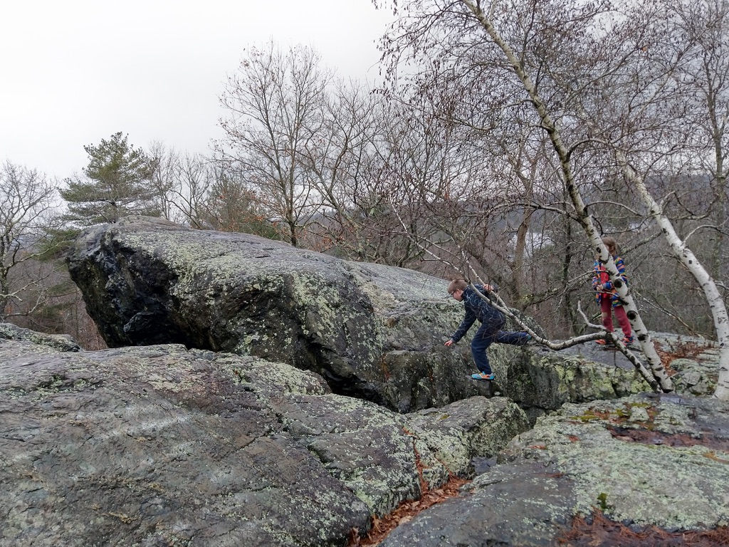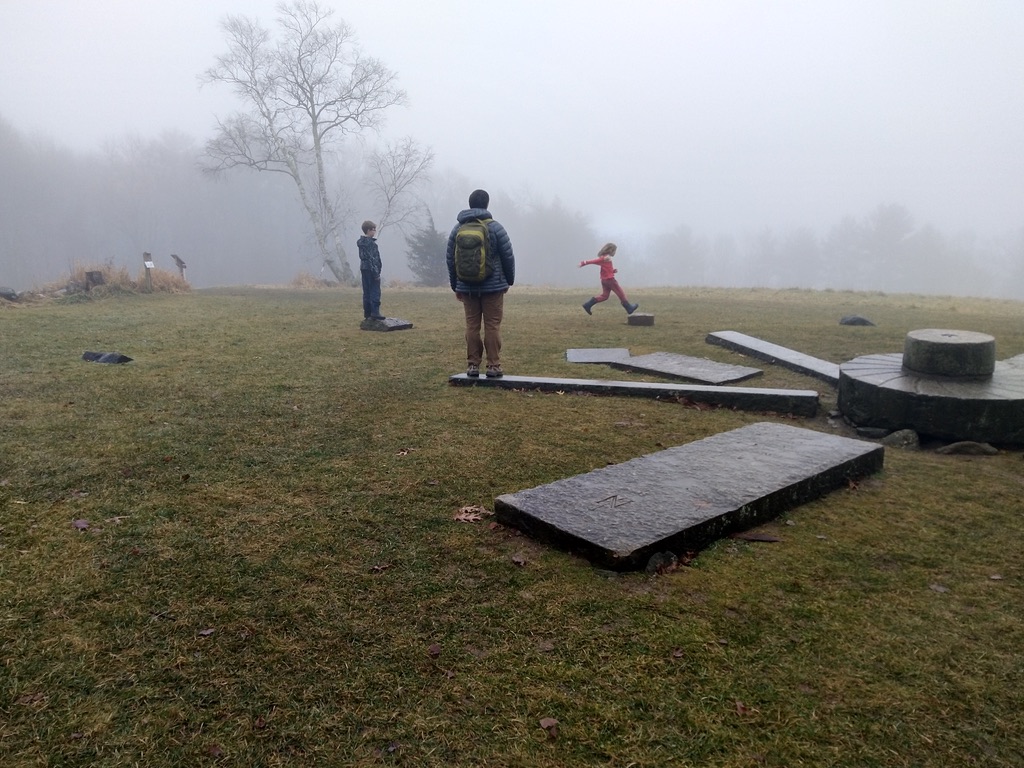 Courtney: We went on a misty day, and looped all through the reservation. We saw the quaking bog, though I'd like to go back when the pitcher plants are around. We dallied at the solstice stones, with their giant compass rose, and at Elephant Rock, and did not pay much attention to the time until we were just a bit past the halfway point of our loop and realized it was getting pretty dim (and still misty) - at which point we picked up the pace to make it back to the parking lot before complete darkness, and the gates closing at 5pm. By a series of fortunate events, I had car mints in my pocket, which became speed mints. And they helped us access some pockets of willpower to hurry through the last bits of trail. I was super proud of all of us for hanging together and finishing well, and we came home to showers, a new recipe to cook, and a family movie of Flight of the Navigator. We tallied up our week of hikes, between Arizona and Massachusetts, and we clocked in at just over 16 miles total.