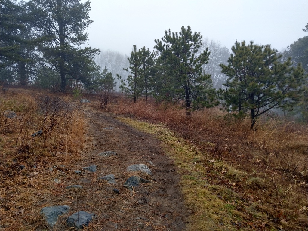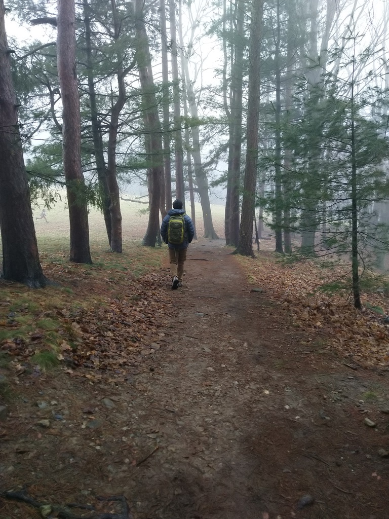 Jonah: New Years Day Hike, 2022 Edition! This was a lovely hike through the varied terrain of hilly Ward Reservation. The dominating feature of the hike was the very misty and foggy weather, which gave everything a sense of mystery and otherworldliness. The fire tower emerged from the mist in quite a cinematic way, and the giant covered reservoir structure on the top of the main hill had a sci-fi feel to it in the mist. Even the character of the trees in the woods changed. It caught us by surprise how quickly it became dark after sunset, and we were scrambling to get back to the car before the gate closed for the night!