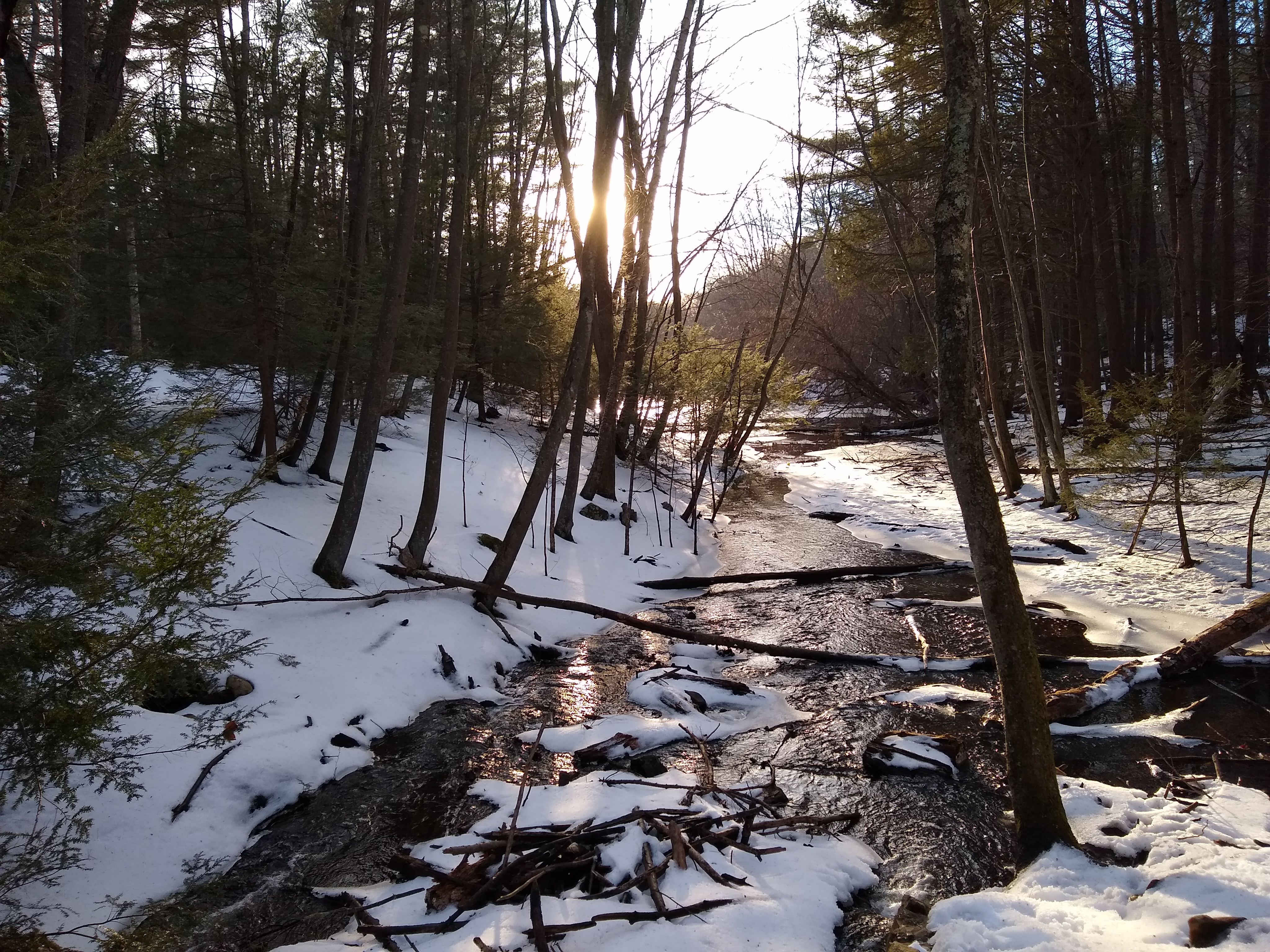 Jonah: A fairly treacherous hike! The trails were like rivers of slick wet ice, with the only refuge being the margins or simply bushwhacking. “The Path of Least Resistance” was my name for it. How much ice does there have to be before a downhill turns into a bobsled course? It's a slippery slope argument!